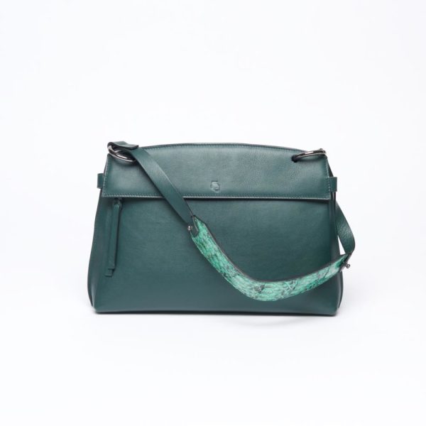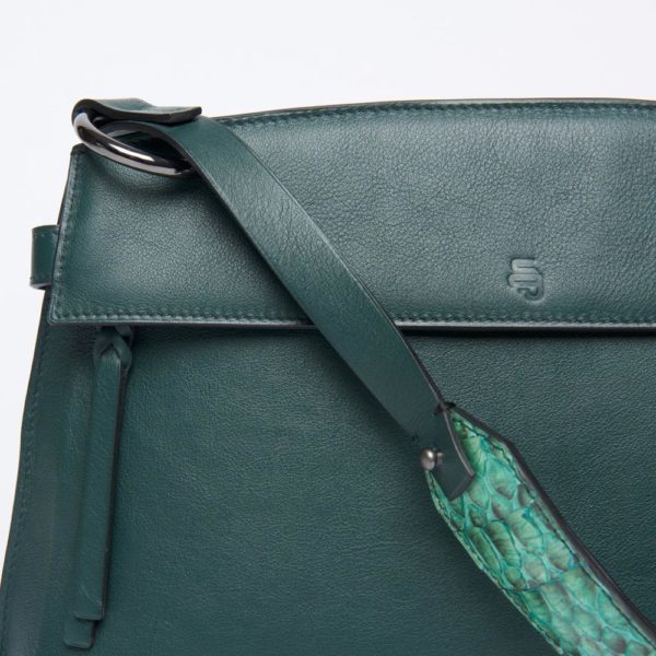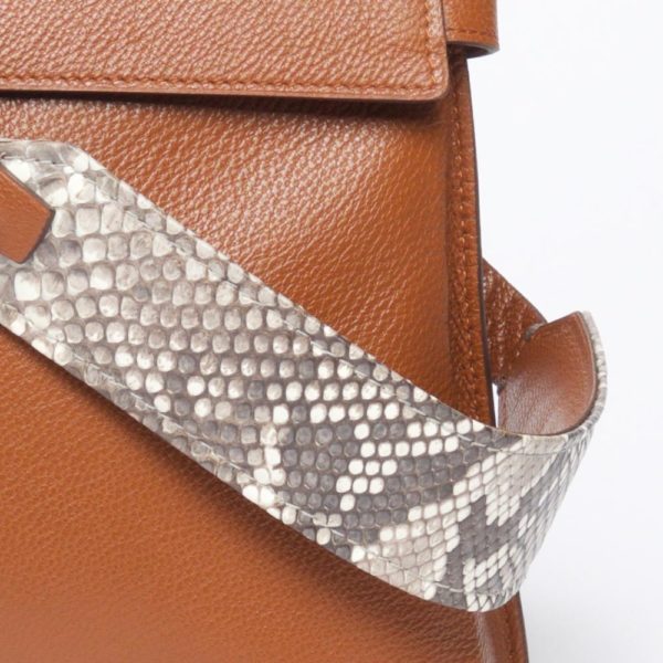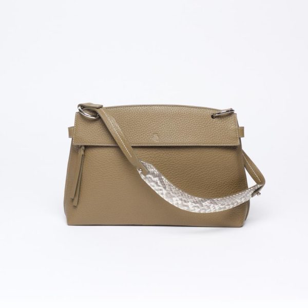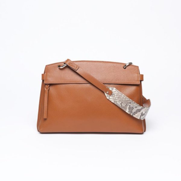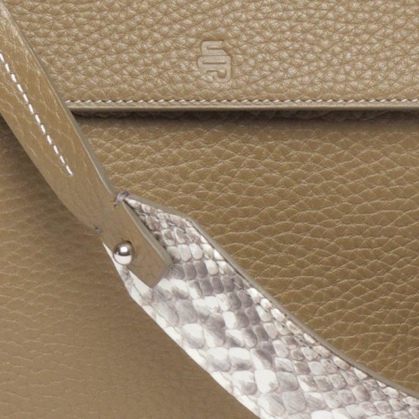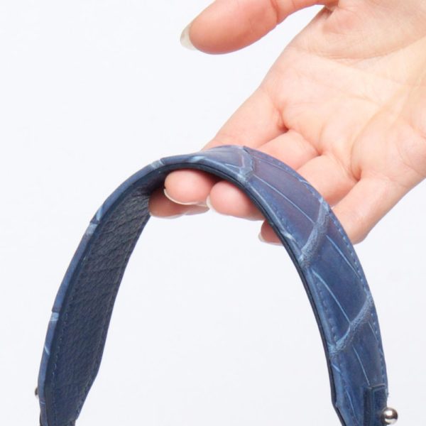 Cette pochette fine de style Sellier se porte à l’épaule, avec poignée amovible en cuir exotique. La fermeture se fait par un zip caché sous le rabat. Doublure en toile de coton écru.